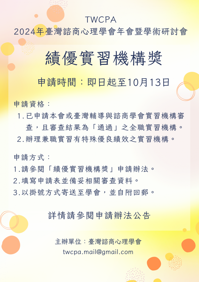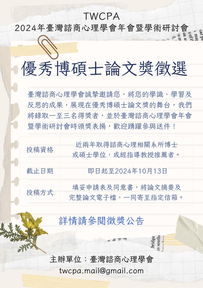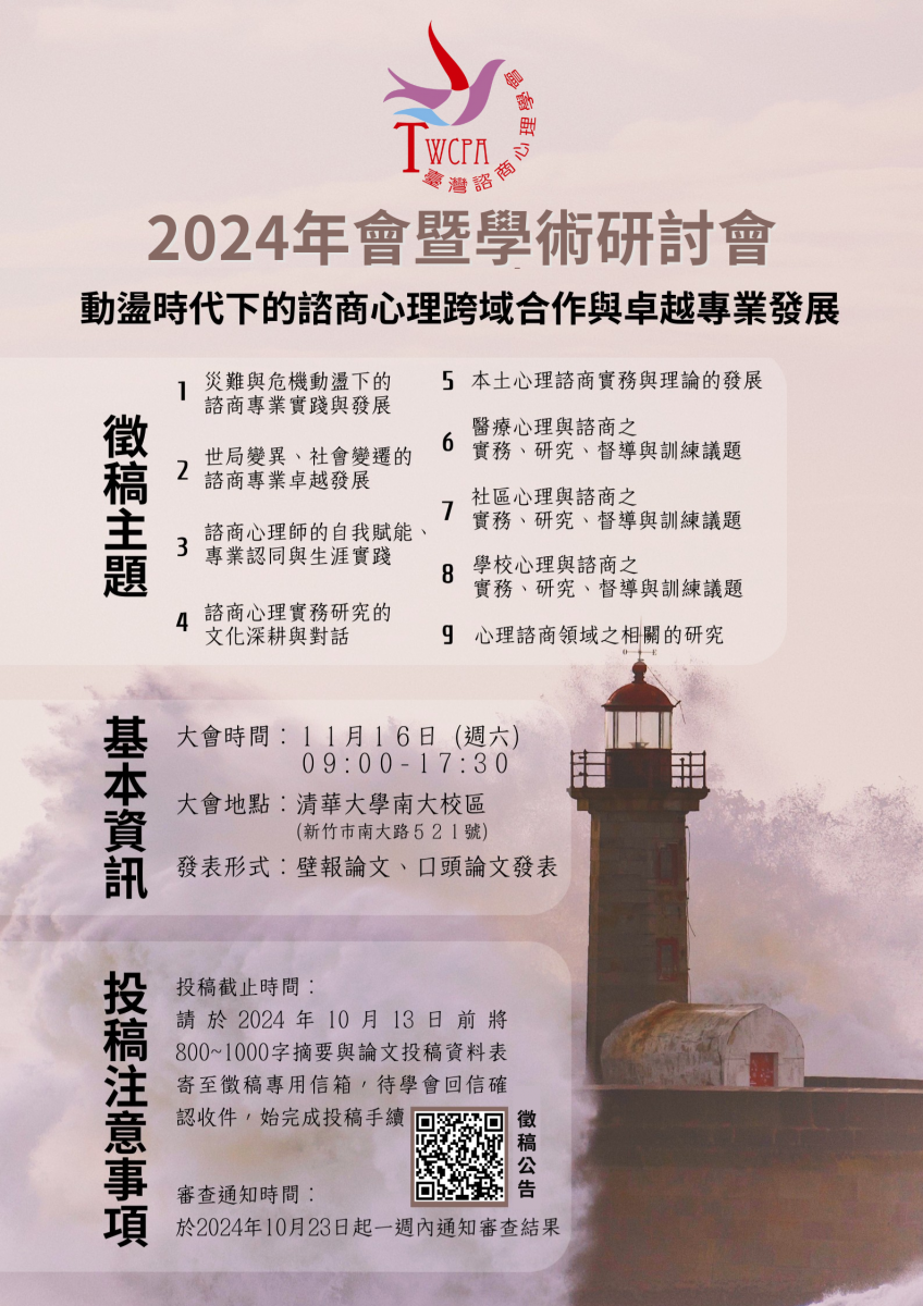 【臺灣諮商心理學會-活動宣傳】2024年臺灣諮商心理學會年會暨國際學術研討會