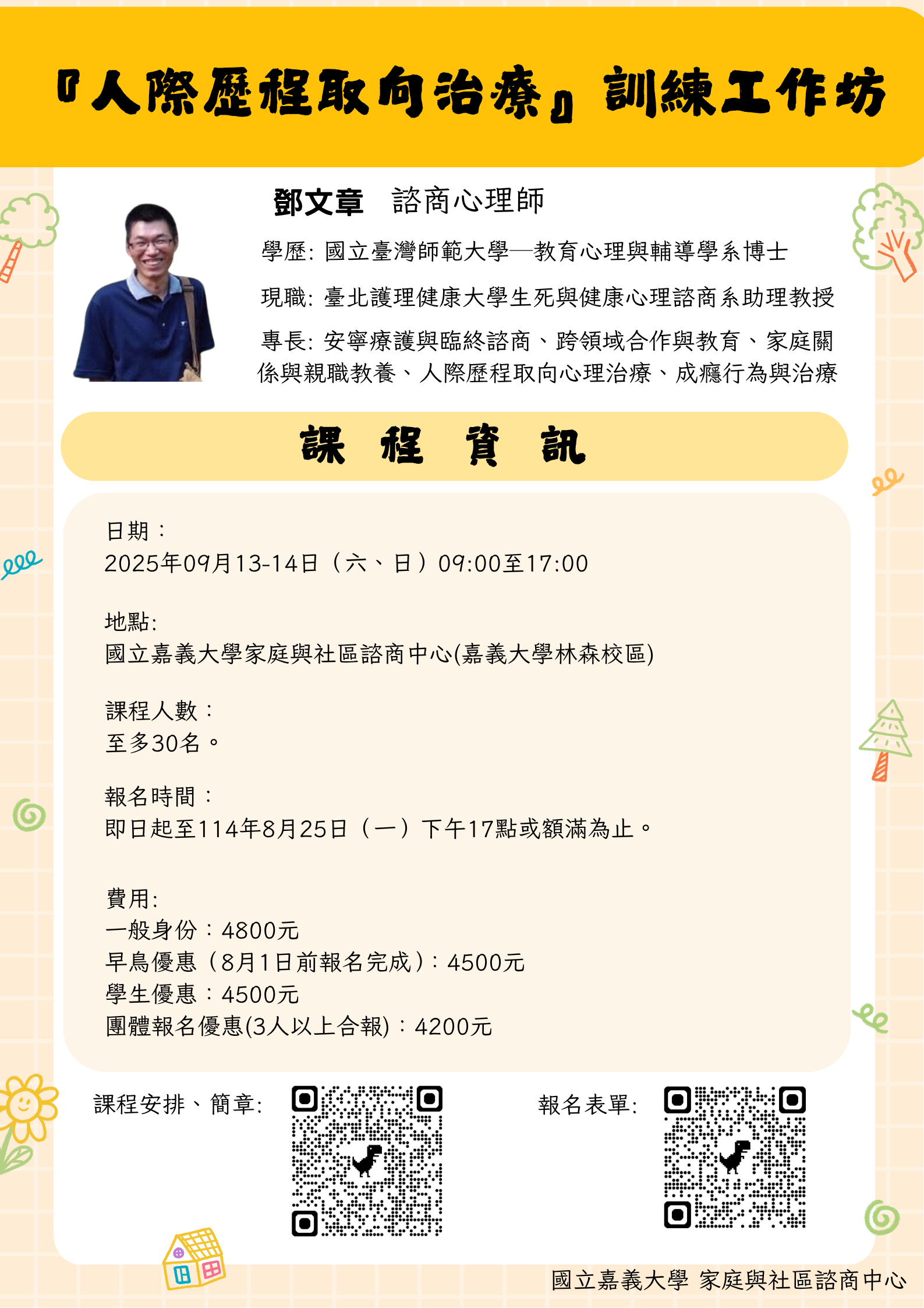 (一)課程主題:「人際歷程取向治療」訓練工作坊