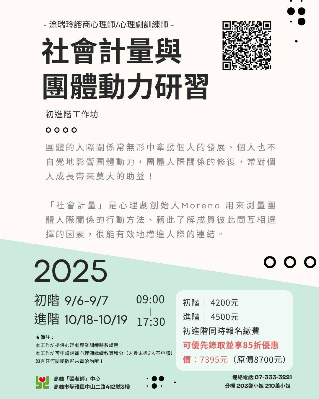 1.上過社會計量與團體動力研習初階6小時以上