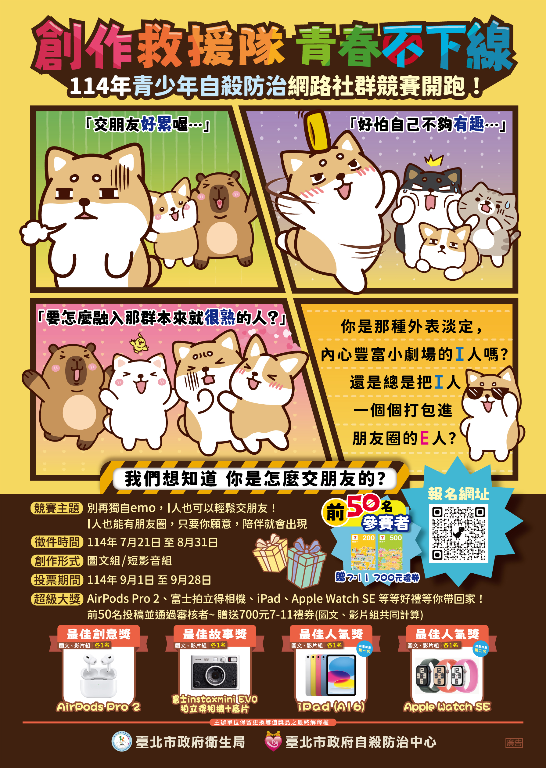- 最佳人氣獎(民眾投票第一名)(圖文、影片組各1名):iPad