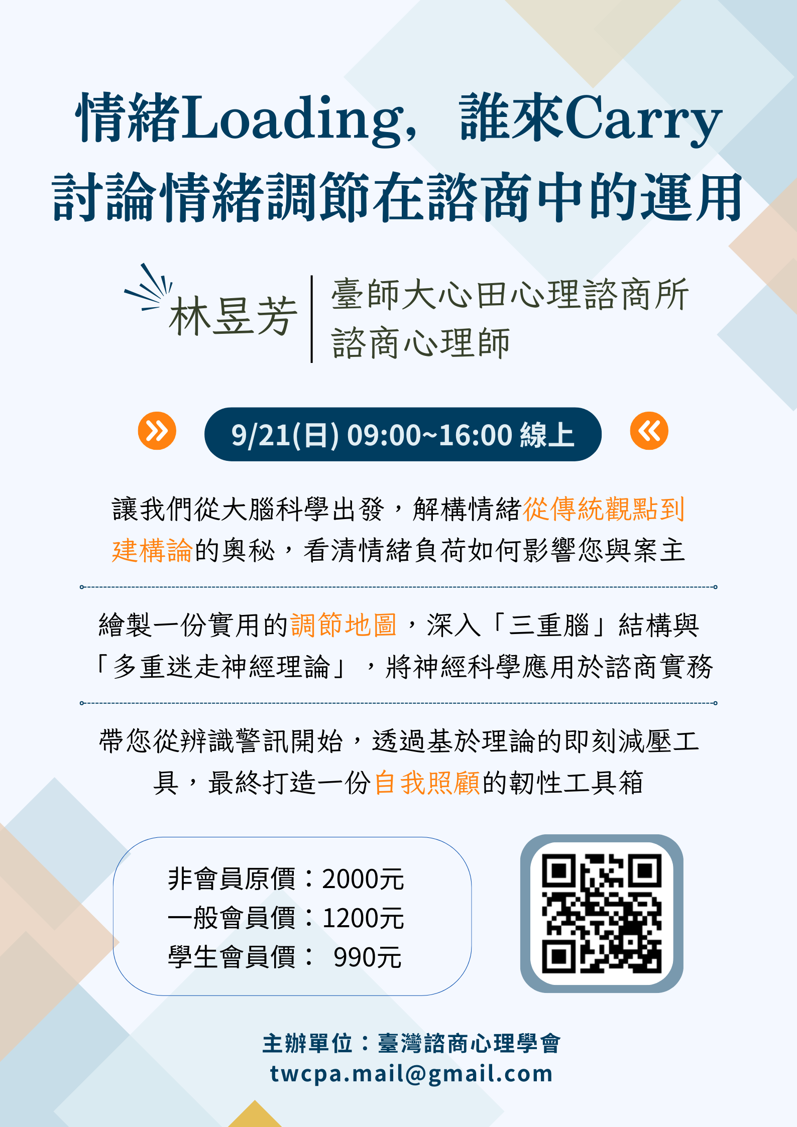 講授情緒Loading,誰來Carry: 討論情緒調節在諮商中的運用 線上課程(點選可進入報名表)